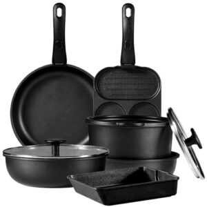• セット内容はフライパン22cm・26cm、ソースパン18cm、専用取っ手、ガラスふた2枚の6点で、日常調理の幅広いニーズに対応できます。