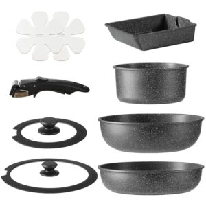 CAROTEカローテフライパン12点セットは、取っ手が簡単に外せるため収納効率が高く、新生活の限られたキッチンスペースに適しています。